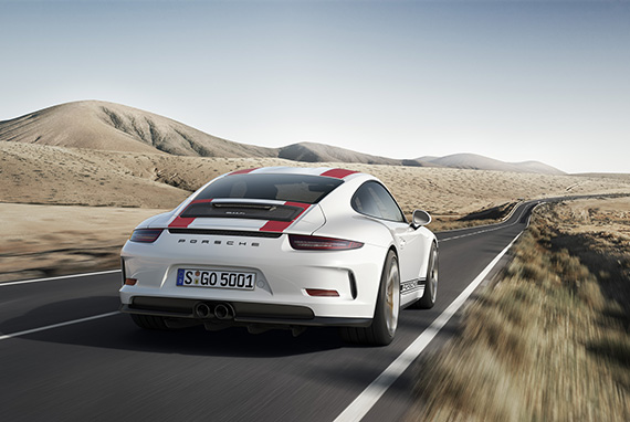 最高出力368 kW(500 PS)を生み出す、排気量4リッターの水平対向自然吸気エンジンを6速マニュアルスポーツトランスミッションと組み合わせた911 Rは、1967年にホモロゲーションモデルとしてデビューした初代911Rの伝統を受け継いでいる。限定生産の911 R(R = Racing)は、ラリー、タルガ・フローリオ、スピードトライアルなどで活躍した。伝説を残した初代モデルと同様、ニュー911 Rも、体系的な軽量設計、最高のパフォーマンス、そして純粋なドライビング体験によって独自の個性を作り上げている。991台だけが限定生産されるこの特別なモデルは、車両総重量が1,370 kgであることから、現時点では最軽量の911モデル。