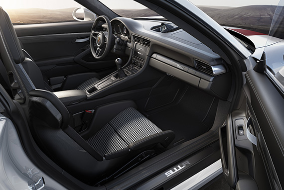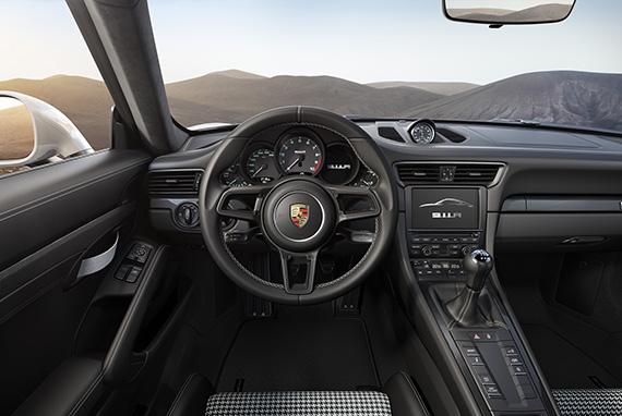 911 Rのリアに搭載されている4リッター水平対向6気筒エンジンは、911 GT3 RSから継承したもの。このレーシングエンジンは、最高出力500 PS / 8,250 rpm、最大トルク460 Nm / 6,250 rpmを発生。さらに、静止状態から3.8秒で車両を100 km/hの車速に到達させる。純粋主義に徹したこの911は、軽量設計が施されただけでなく、特別に6速マニュアルスポーツトランスミッションが搭載。ショートストロークにより、アクティブなドライビング体験を際立たせる。911Rの推進力は、車速が323 km/hに達するまで衰えることなく、走行距離100 kmあたりの燃料消費量(NEDC)は13.3リッターとなっている。
